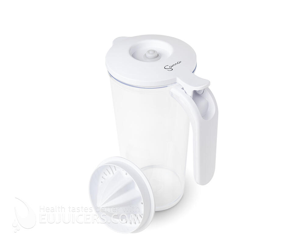 Több mint egy éjszakán át kell tárolnia a gyümölcslevét? Vákuumkancsónkkal eltávolíthatja az oxigént, hogy a gyümölcslé tovább friss maradjon. Kézi pumpával is rendelkezik a levegő kiszívásához a kancsóból. A csomag tartalmaz egy kézi vákuumpumpát a levegő eltávolításához, valamint egy integrált citrusos tartozékot, amellyel közvetlenül a kancsóba készíthet narancslevet.